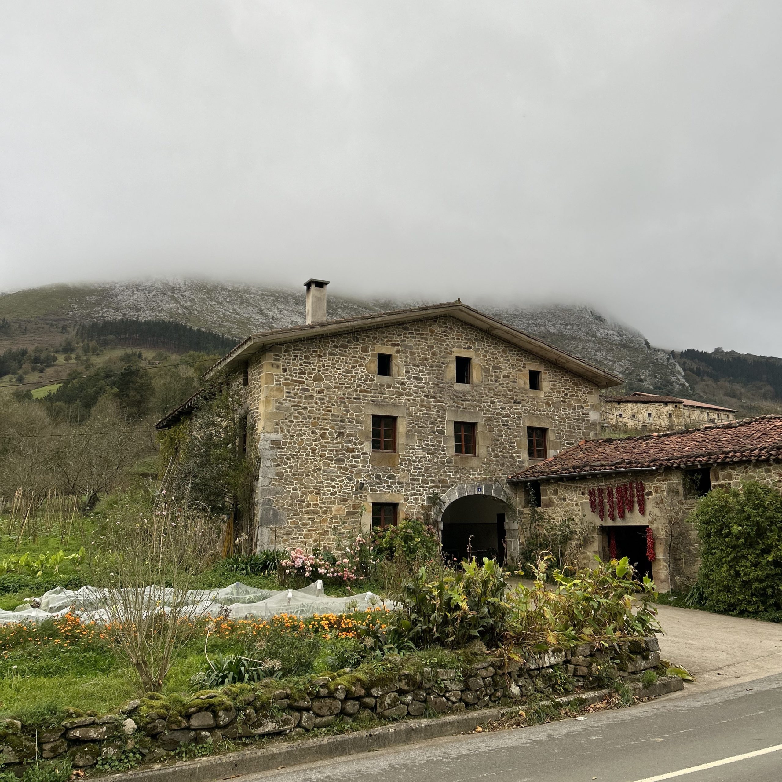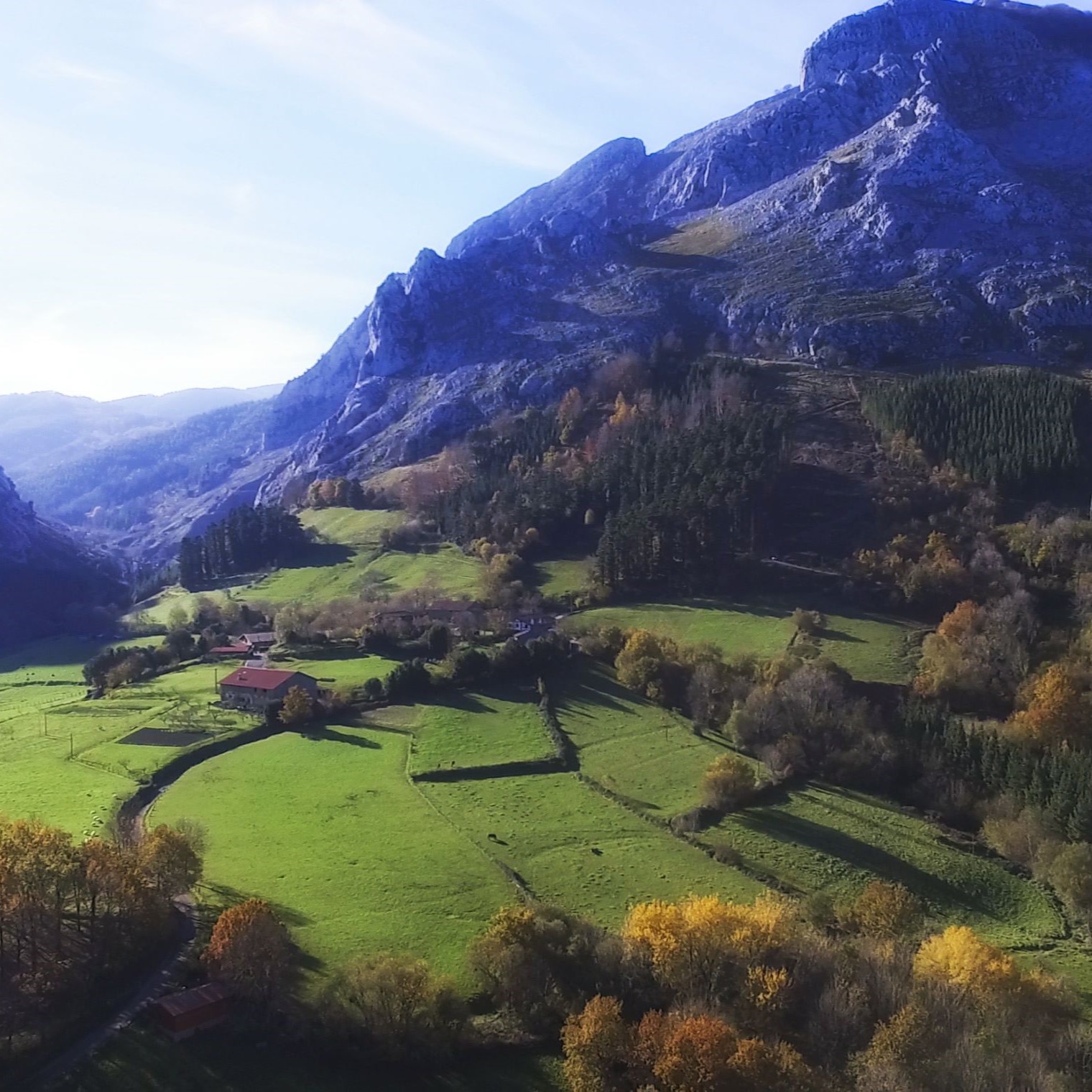 El conjunto se enmarca en el paisaje montañoso de Enkarterri, una comarca que mantiene viva la esencia rural y guarda joyas naturales como la cueva de Pozalagua.